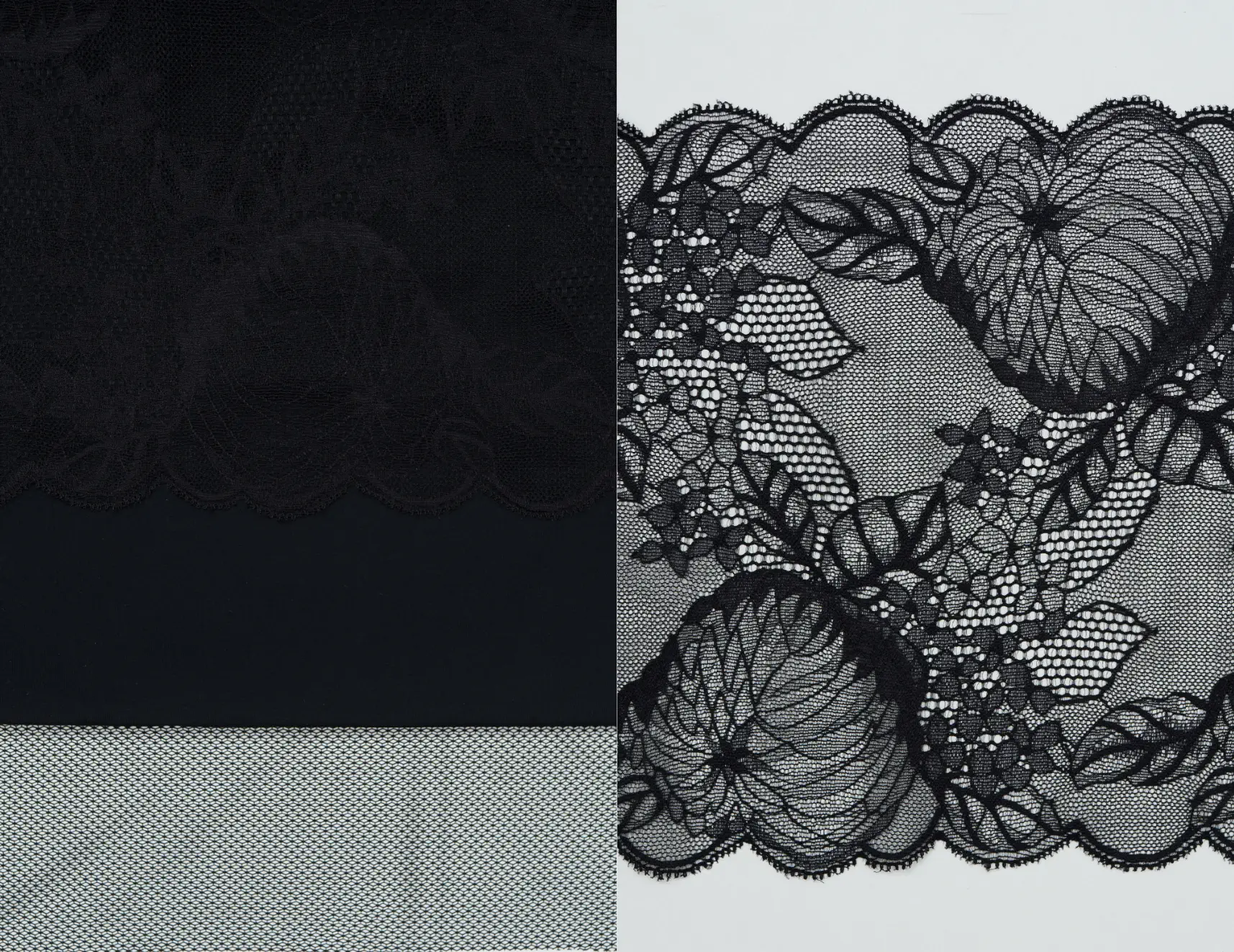 - 1m10 x 67,5cm de résille géométrique noire (élasticité 45% perpendiculaire à la laize) ou bien 50cm x 1m25 de résille géométrique noire (élasticité 40% parallèle à la laize)