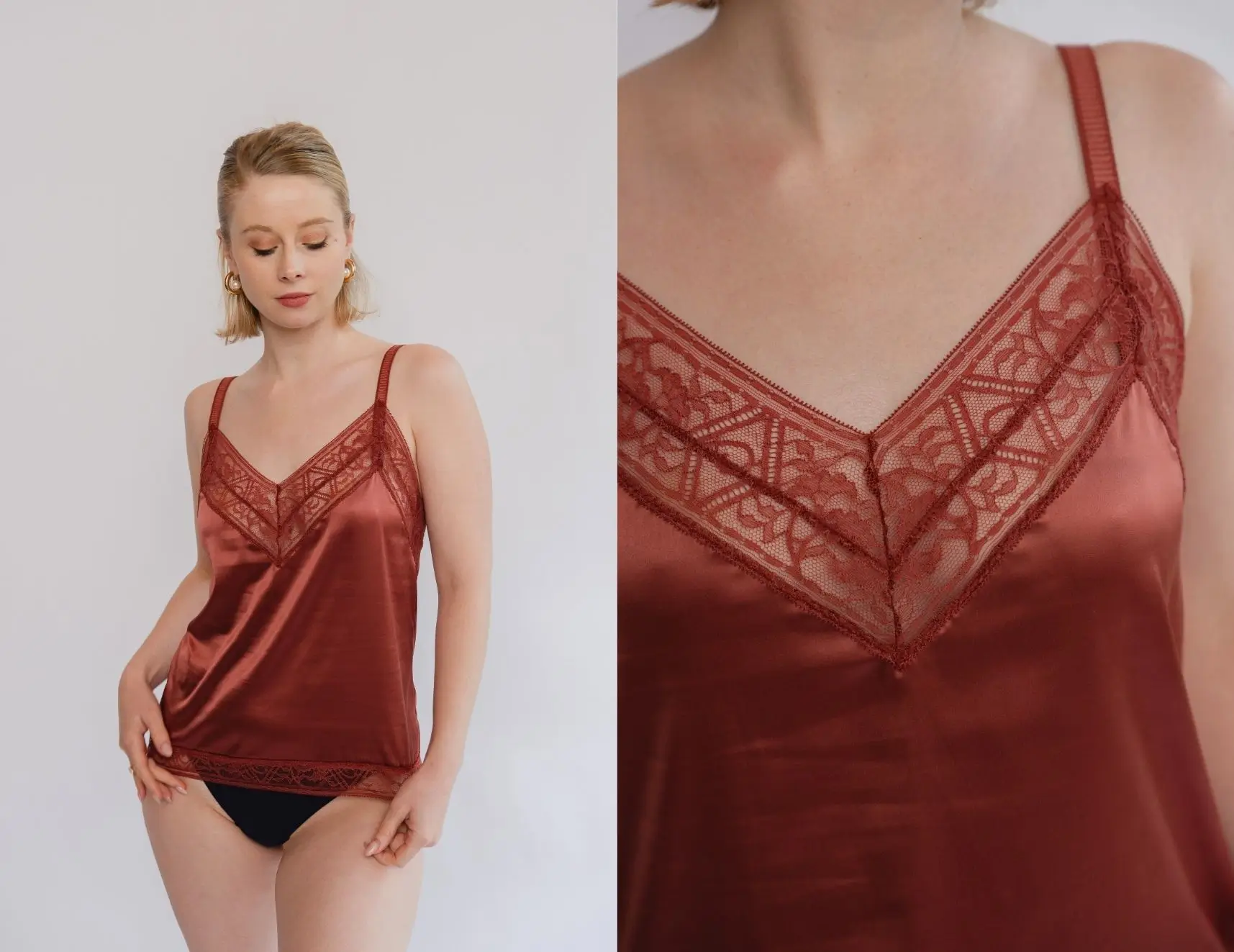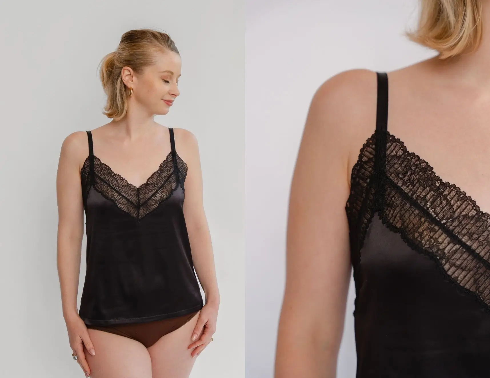 - Finition au choix : galon de dentelle sur le bas ou ourlet simple
