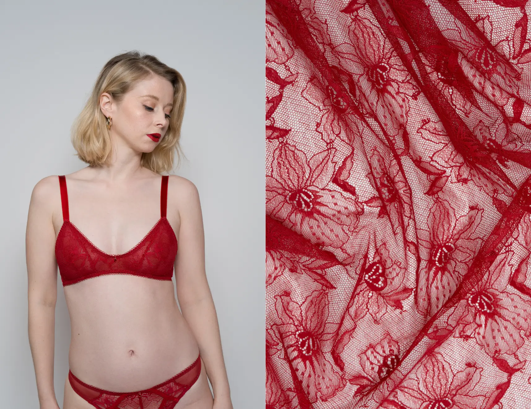 - 80 cm × 1,60 m de dentelle stretch rouge (élasticité : 35 %, perpendiculaire à la laize)