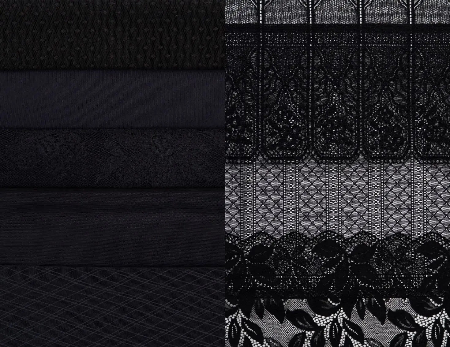 - 75cm x 1m60 de dentelle noire (élasticité 25%, perpendiculaire à la laize)