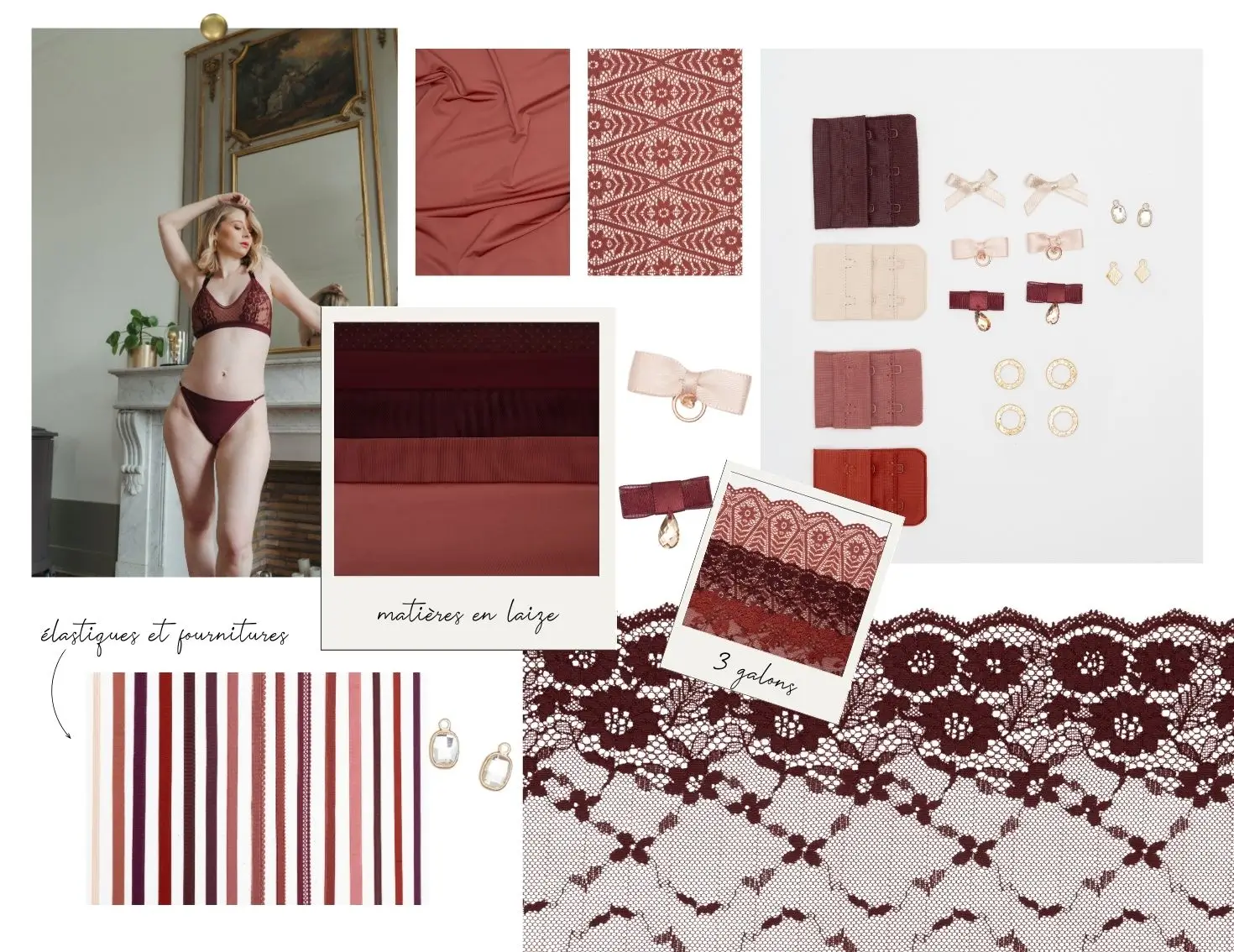 Des tissus, dentelles et détails exclusifs – soigneusement sélectionnés pour vous permettre de réaliser 7 bas uniques, et pourquoi pas, leurs brassières assorties.