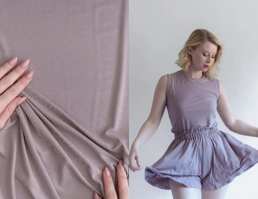 Modal mauve grisé, parfait pour réaliser nos patrons aussi bien en body qu’en prêt-à-porter ou en lingerie.
