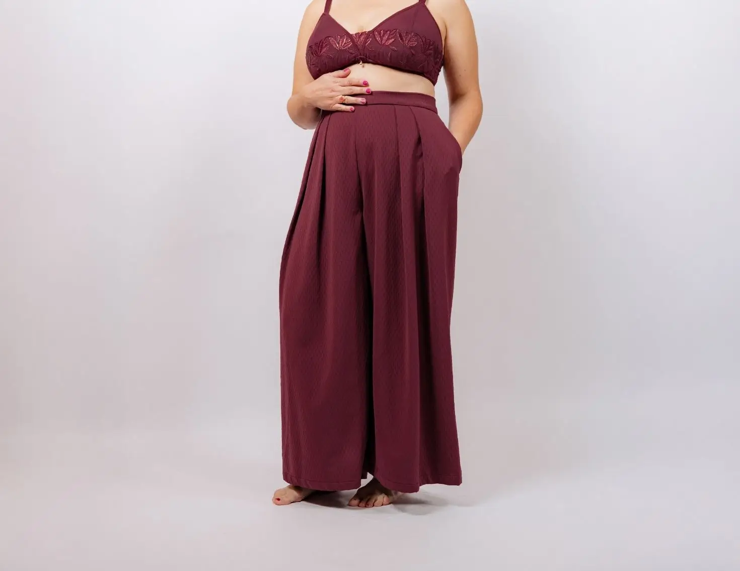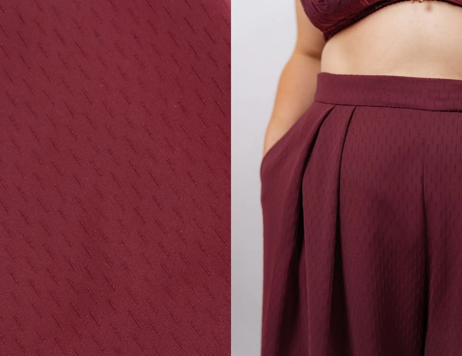 - 2m40 x 1m80 de sergé texturé, bordeaux (chaîne et trame avec un peu d’élasticité m : polyamide et élasthanne)