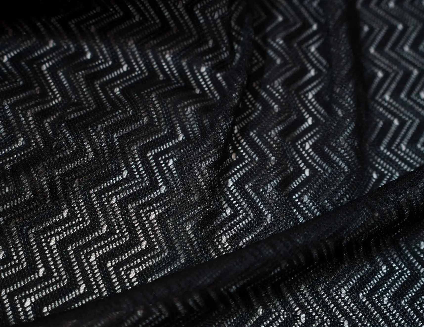 Découvrez notre résille noire à motifs chevron, parfaite pour vos projets lingerie, homewear, body et prêt-à-porter!