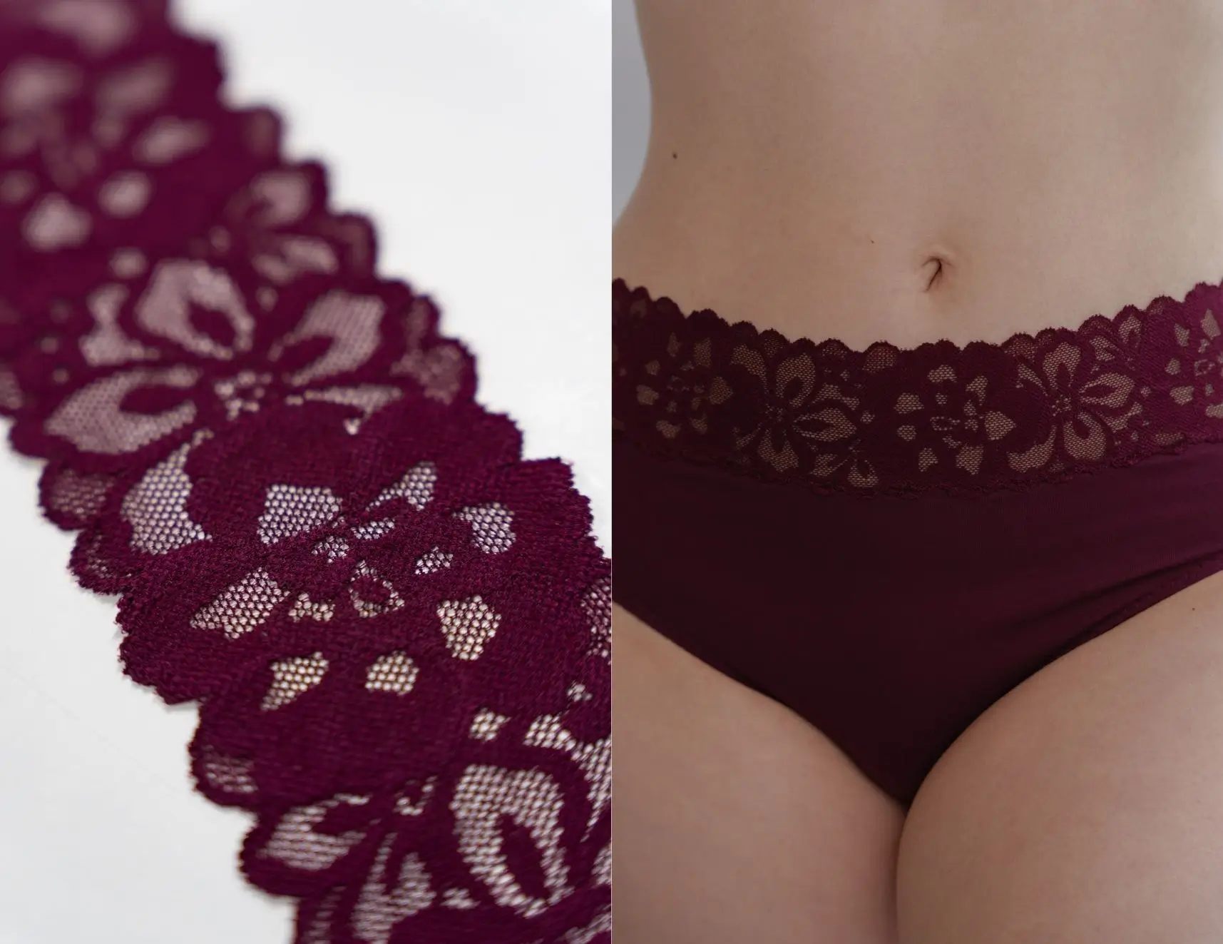 Trim dentelle prune/bordeaux.