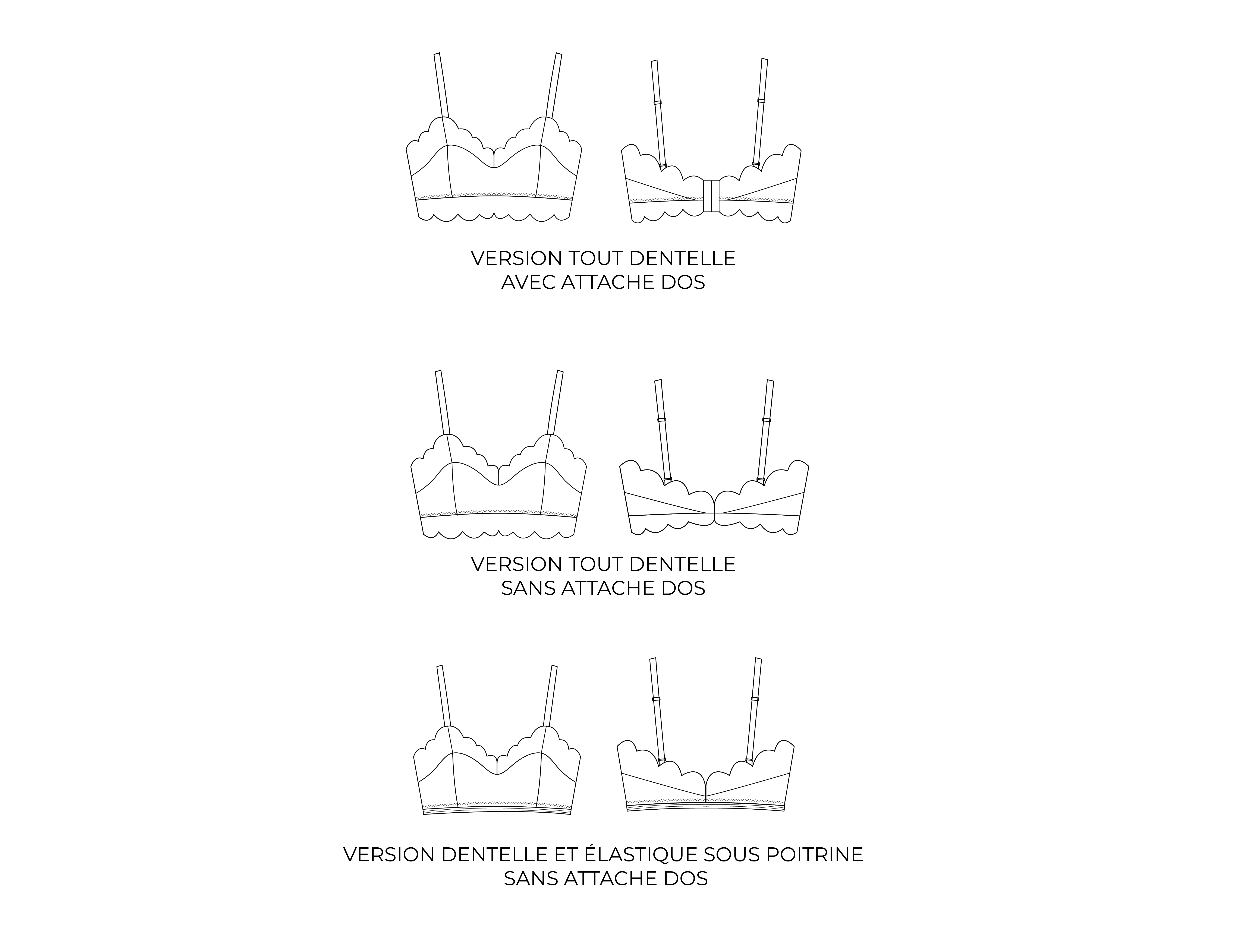 Composé d’une brassière et d’une culotte ou un tanga, ce patron se décline à l’infini et convient à toutes les morphologies du 32 au 52.